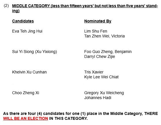Me: "So, for the upcoming Law Soc council elections, I told you² that I put in a nomination form right? Well, nominations have closed. And there are 4 candidates for a single middle-category slot. So there will be voting."