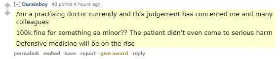 An orthopedic doctor gave a patient an injection. He did not tell the patient about the possible side effects. Side effects occurred. He was fined $100,000 by the Singapore Medical Council (“SMC”) disciplinary tribunal. [Link]