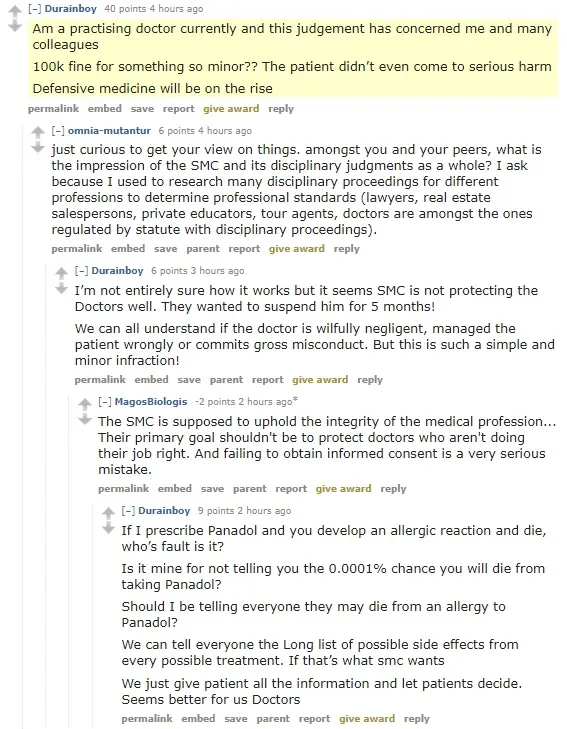The effect of the SMC disciplinary tribunal’s decision is that doctors will have to be more careful in ensuring that patients are aware of the risks involved in proposed treatments. I am extremely sympathetic towards Dr Lim — as far as I can tell, he is a good doctor and a decent person. But it is a core part of a doctor’s responsibilities to advise patients of risks involved in treatment.