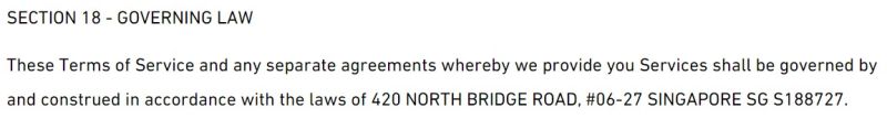 ⁷ If someone sues over the Terms of service in the Singapore Courts, the defendant could theoretically object to the Singapore Courts hearing the matter, on the basis that the Singapore Courts are not the most appropriate courts to hear this dispute. Practically, however...