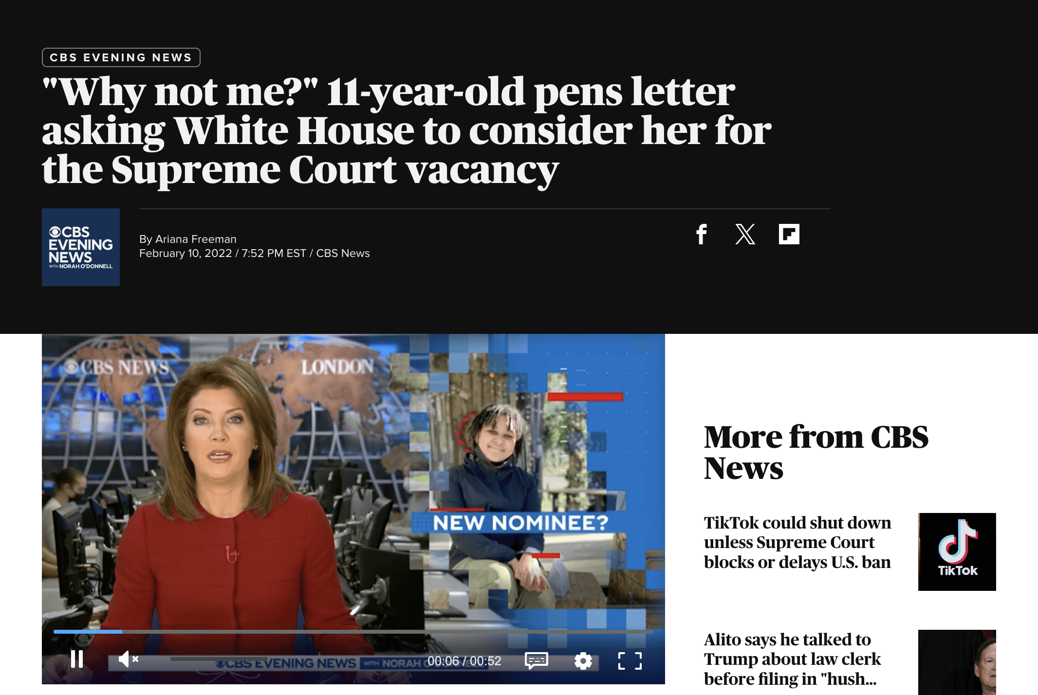https://www.cbsnews.com/news/why-not-me-11-year-old-pens-letter-asking-white-house-to-consider-her-for-the-supreme-court-vacancy/