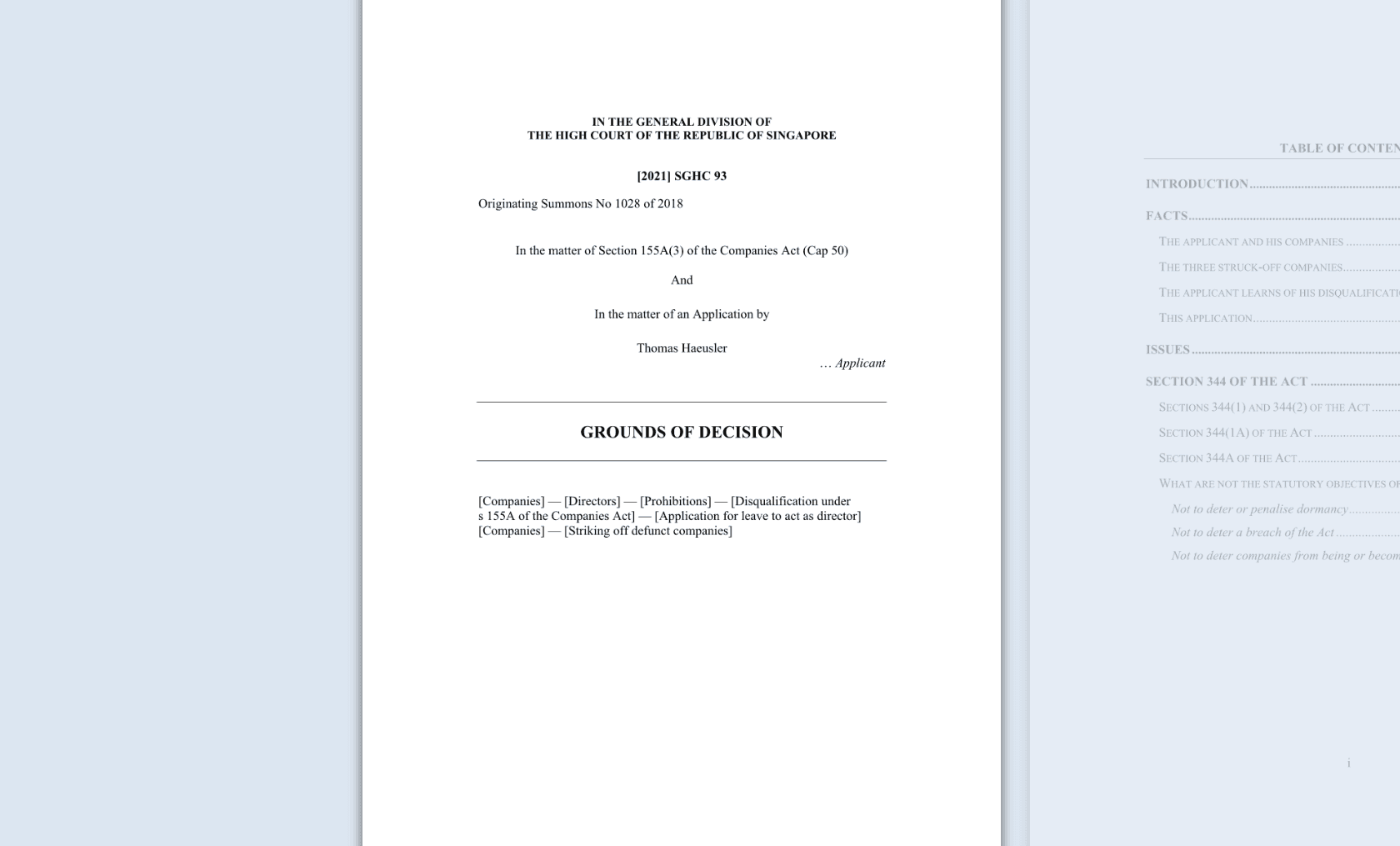 In this case, the applicant ("A") was a director of 35 companies, 3 of which did not file annual returns for at least 2 years. As a result, the 3 companies were struck off. Due to the striking-off, A was automatically disqualified from acting as a director for 5 years.