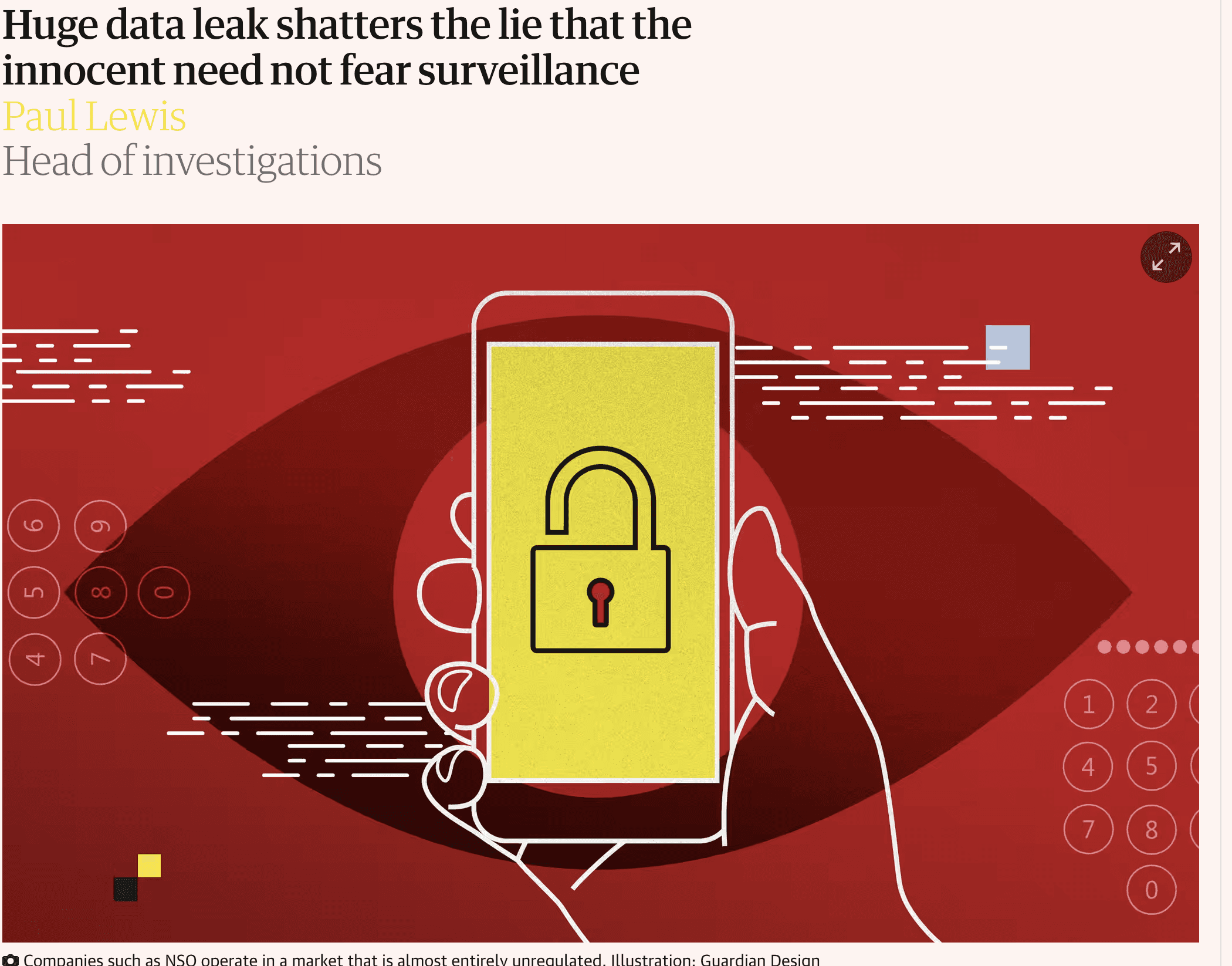 https://www.theguardian.com/news/2021/jul/18/huge-data-leak-shatters-lie-innocent-need-not-fear-surveillance
